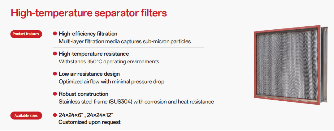 3. Cumplimiento de las normas y reglamentos pertinentes. 4. Tipo de filtro: Seleccione el tipo de filtro adecuado según los requisitos específicos de la aplicación, como filtros HEPA, filtros de carbón activado, filtros de aire resistentes a altas temperaturas, etc.